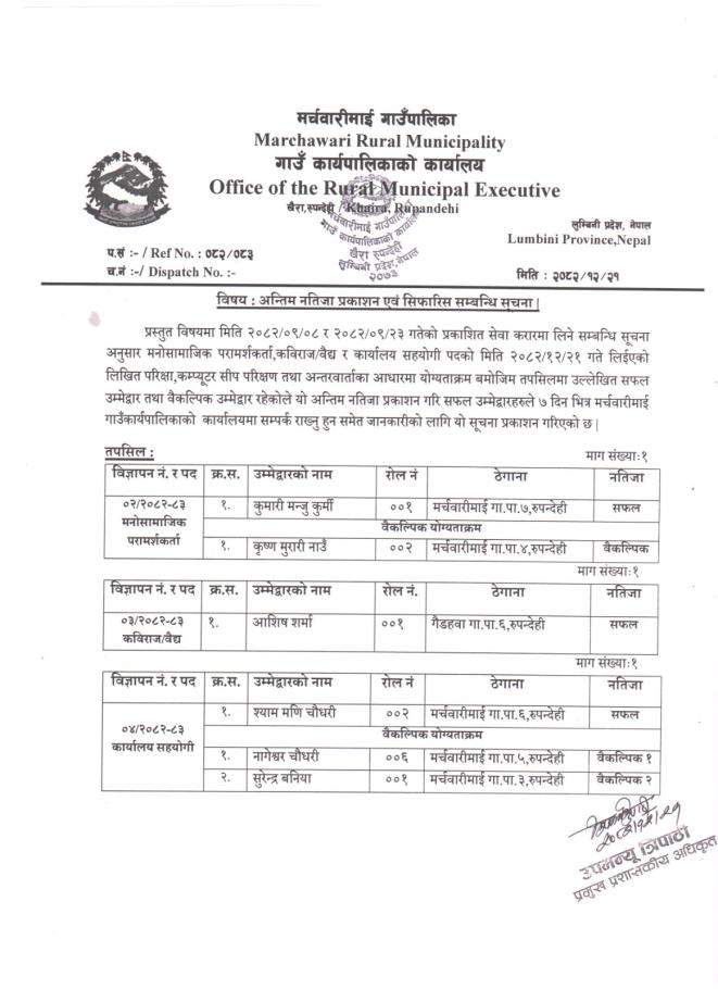 अन्तिम नतिजा प्रकाशन सम्बन्धी सूचना