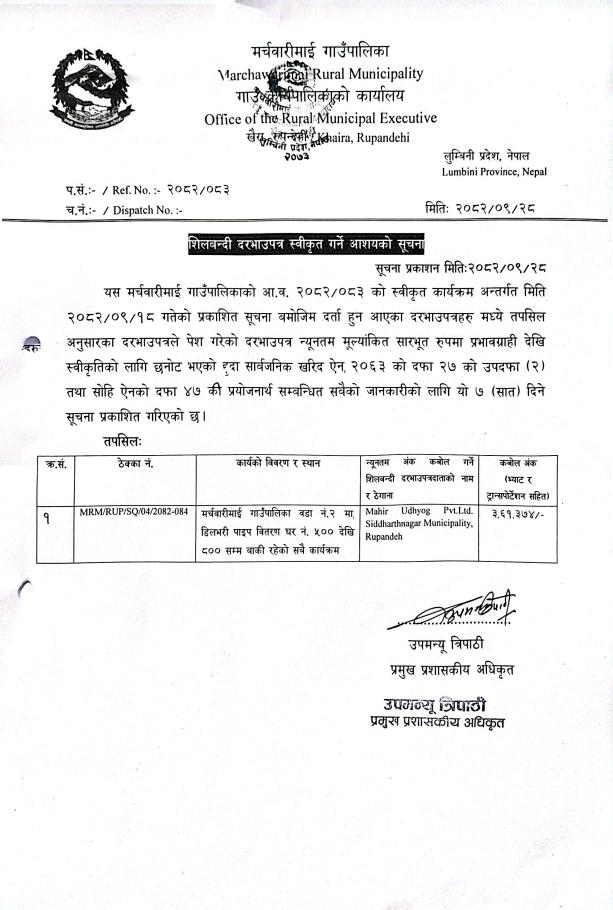 शिलबन्दी दरभावपत्र आह्वानको सूचना..