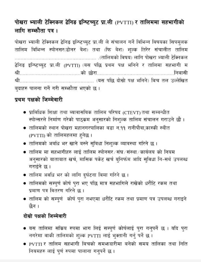 निःशुल्क तालिम सम्बन्धी सूचना