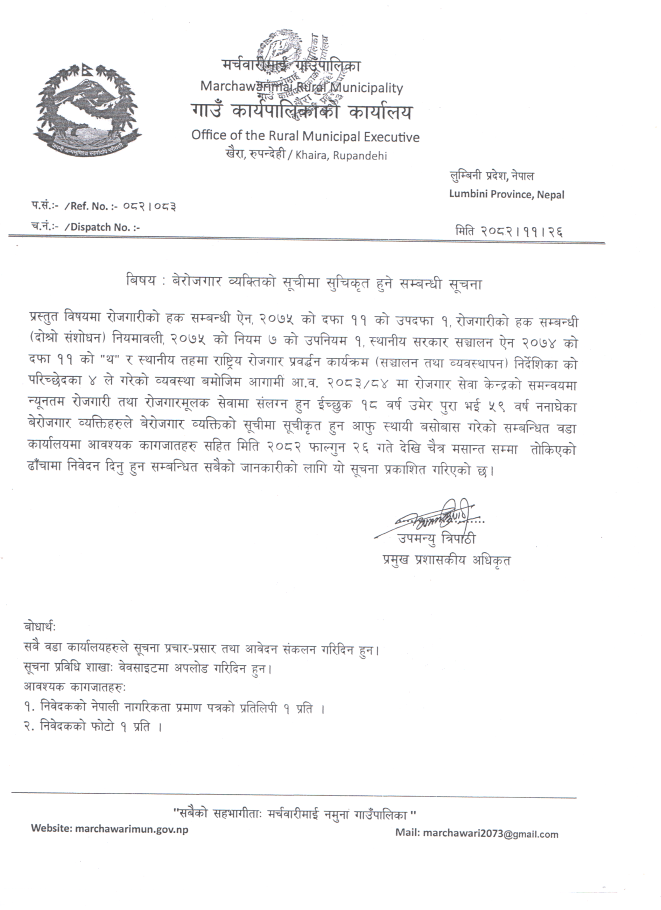 » बेरोजगार ब्यक्तीको सूचीमा सूचिकृत हुने सम्बन्धी सूचना..