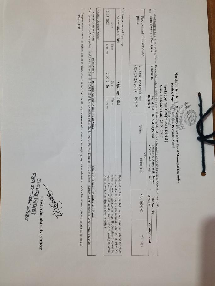 प्रस्ताव माग सम्बन्धि दाेस्राे पटककाे प्रकाशित सुचना