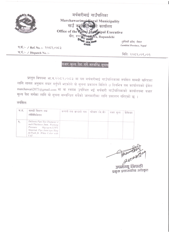 दरभाउपत्र (कोटेशन) अह्वान सम्बन्धी सूचना....