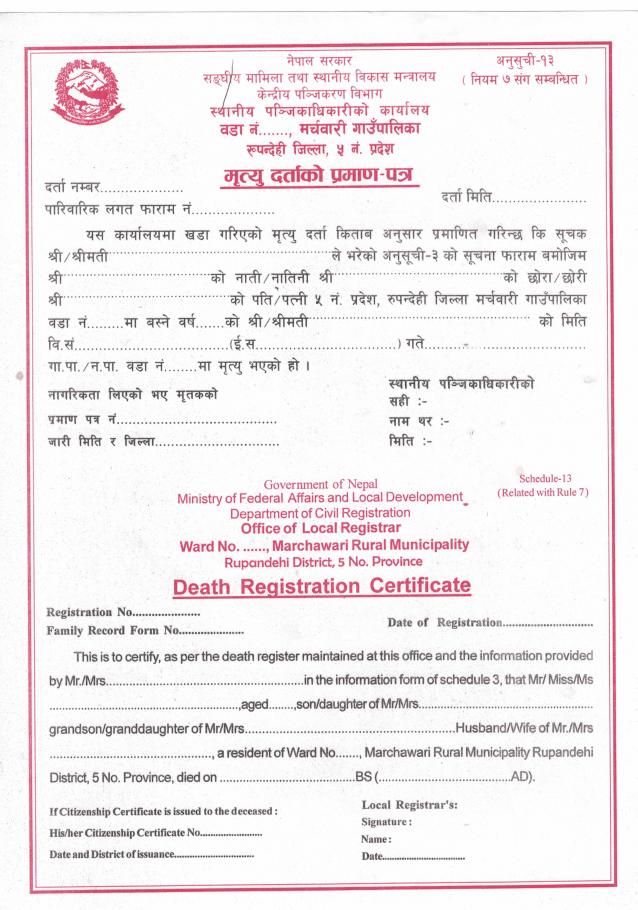 मृत्यु दर्ताकाे सूचना फारम