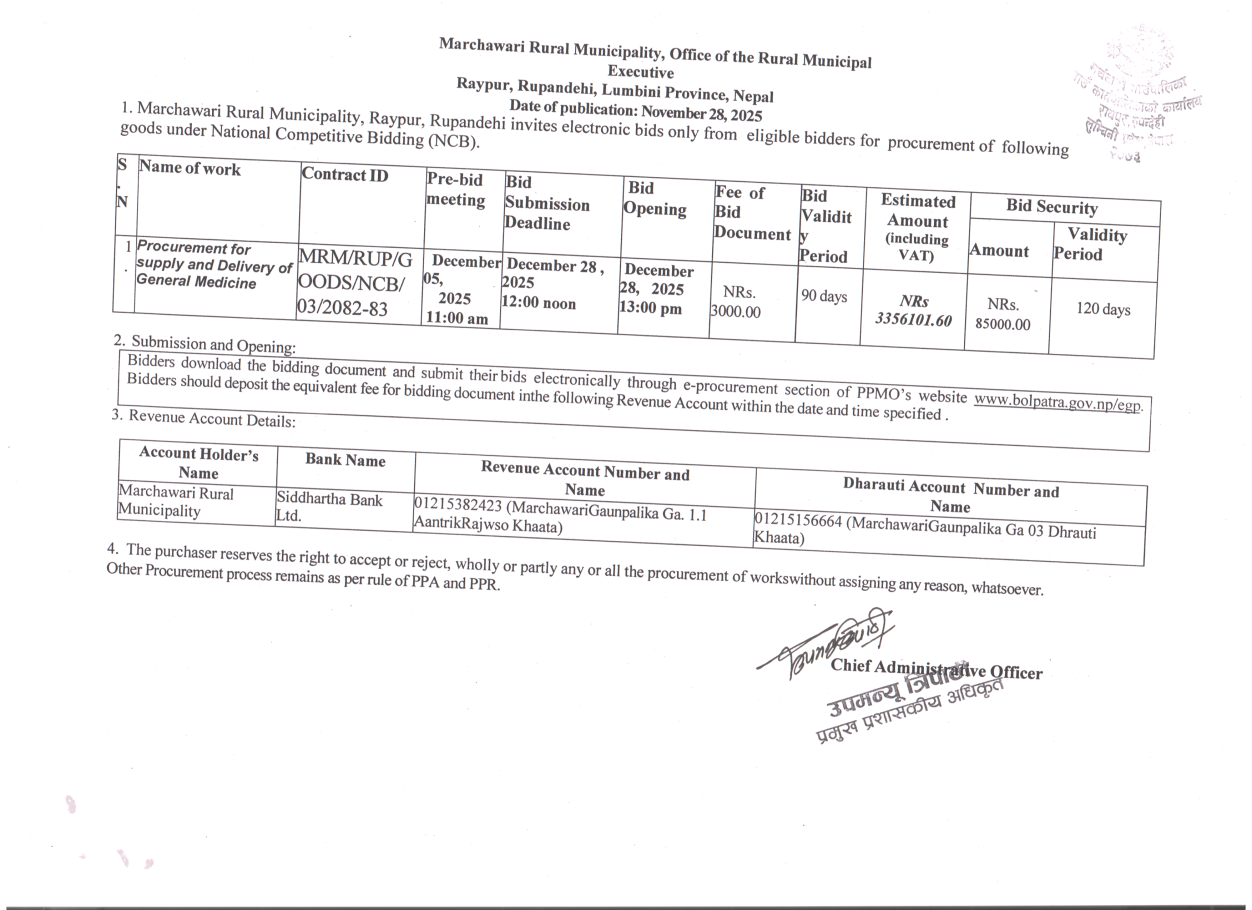 सार्वजनिक खरिद/बोलपत्र सूचना