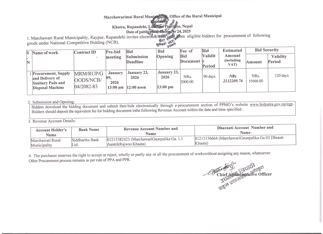 सार्वजनिक खरिद/बोलपत्र सूचना