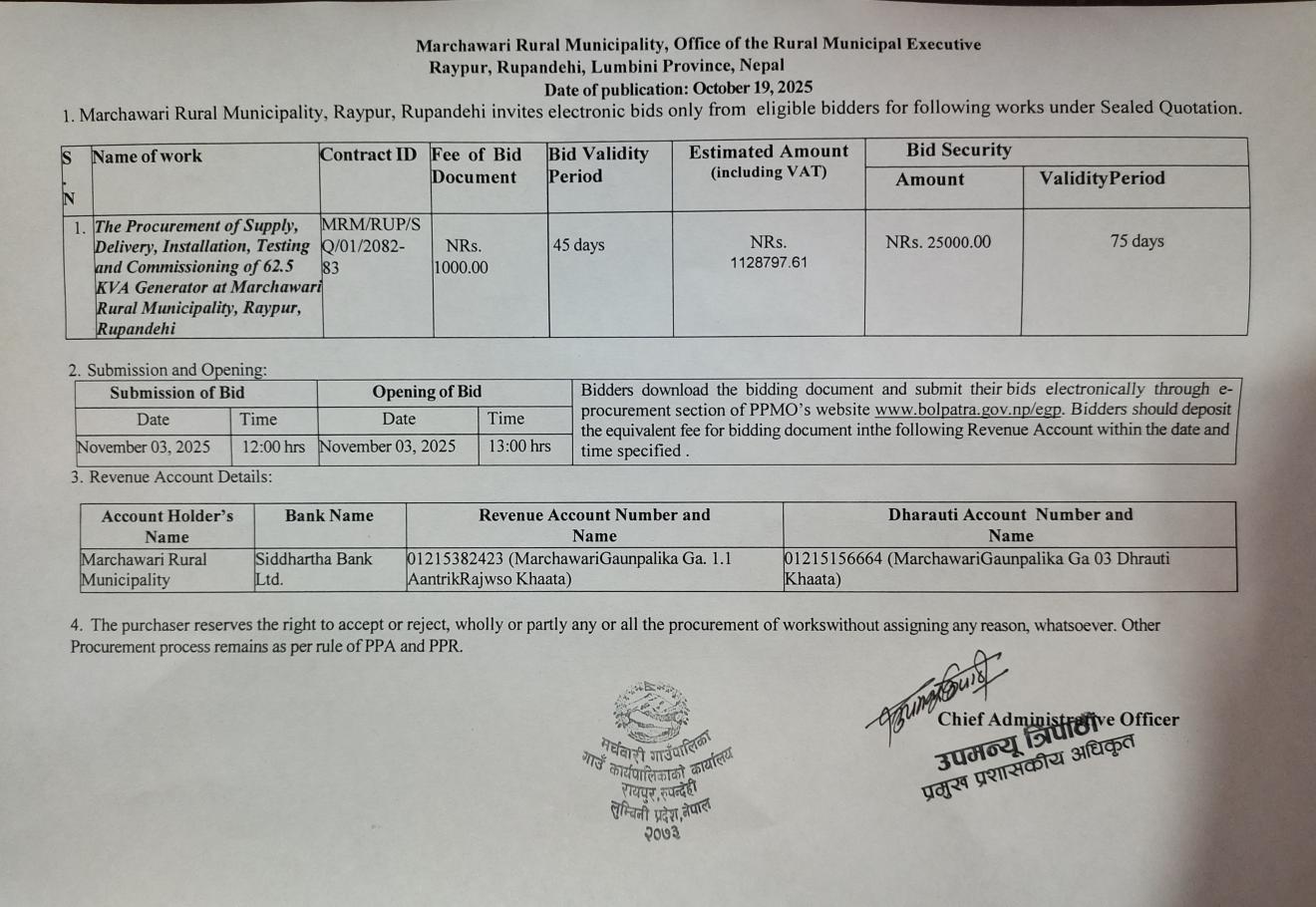 सार्वजनिक खरिद/बोलपत्र सूचना