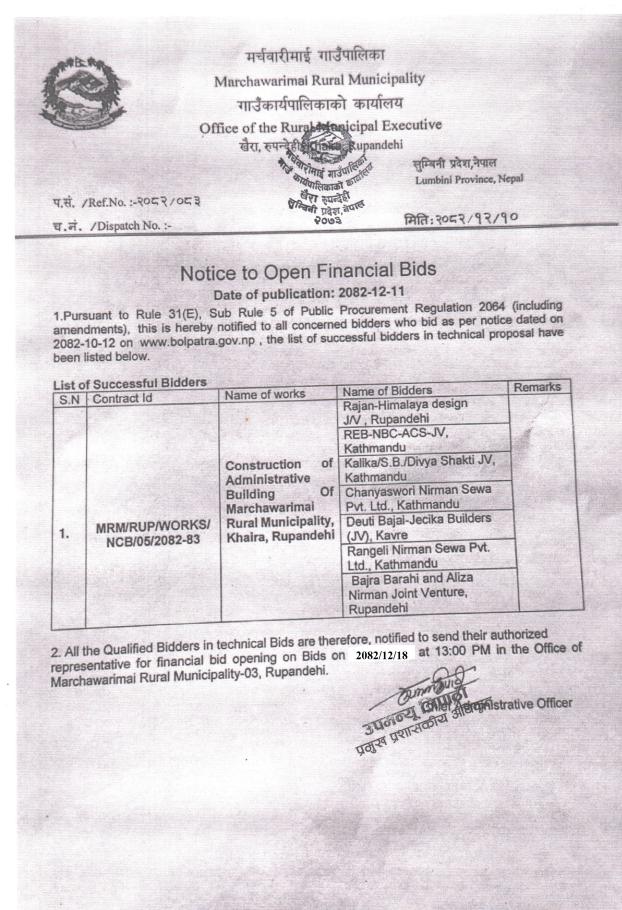 सार्वजनिक खरिद/बोलपत्र सूचना