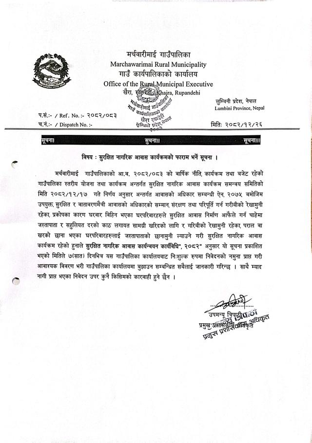 मर्चवारीमाई गाउँपालिका,गाउँ कार्यपालिकाको कार्यालय (खैरा,रुपन्देही)